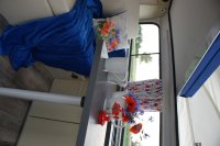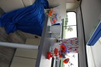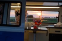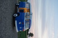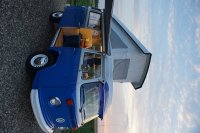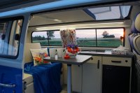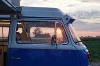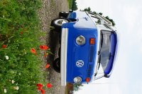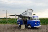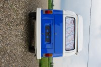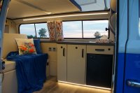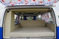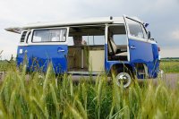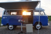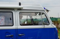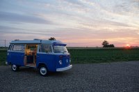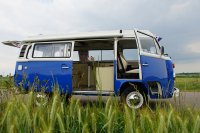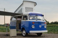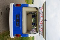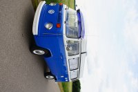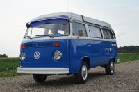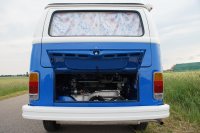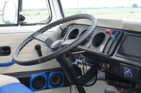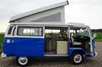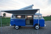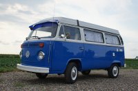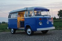 Motor City General przedstawia do sprzedaży prawdziwą gratkę dla miłośników stylu retro, prezentując kamper VW T2B z 1975 roku, który przeszedł gruntowną renowację. Pojazd błyszczy świeżym, biało-niebieskim lakierem, który elegancko podkreśla jego klasyczne kształty i zwraca na siebie uwagę. |